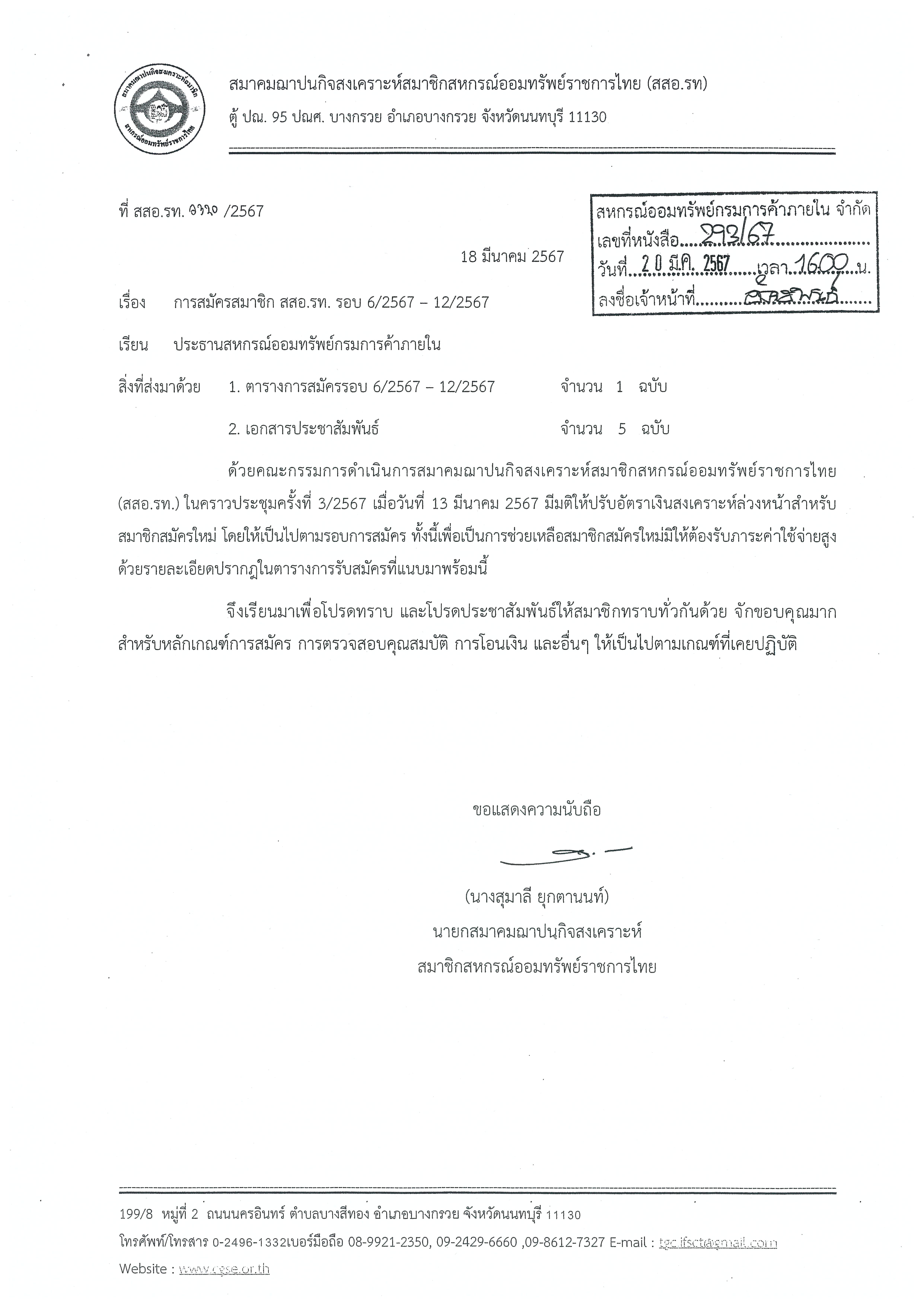 การสมัครสมาชิก สสอ.รท. รอบ 6/2567 - 12/2567