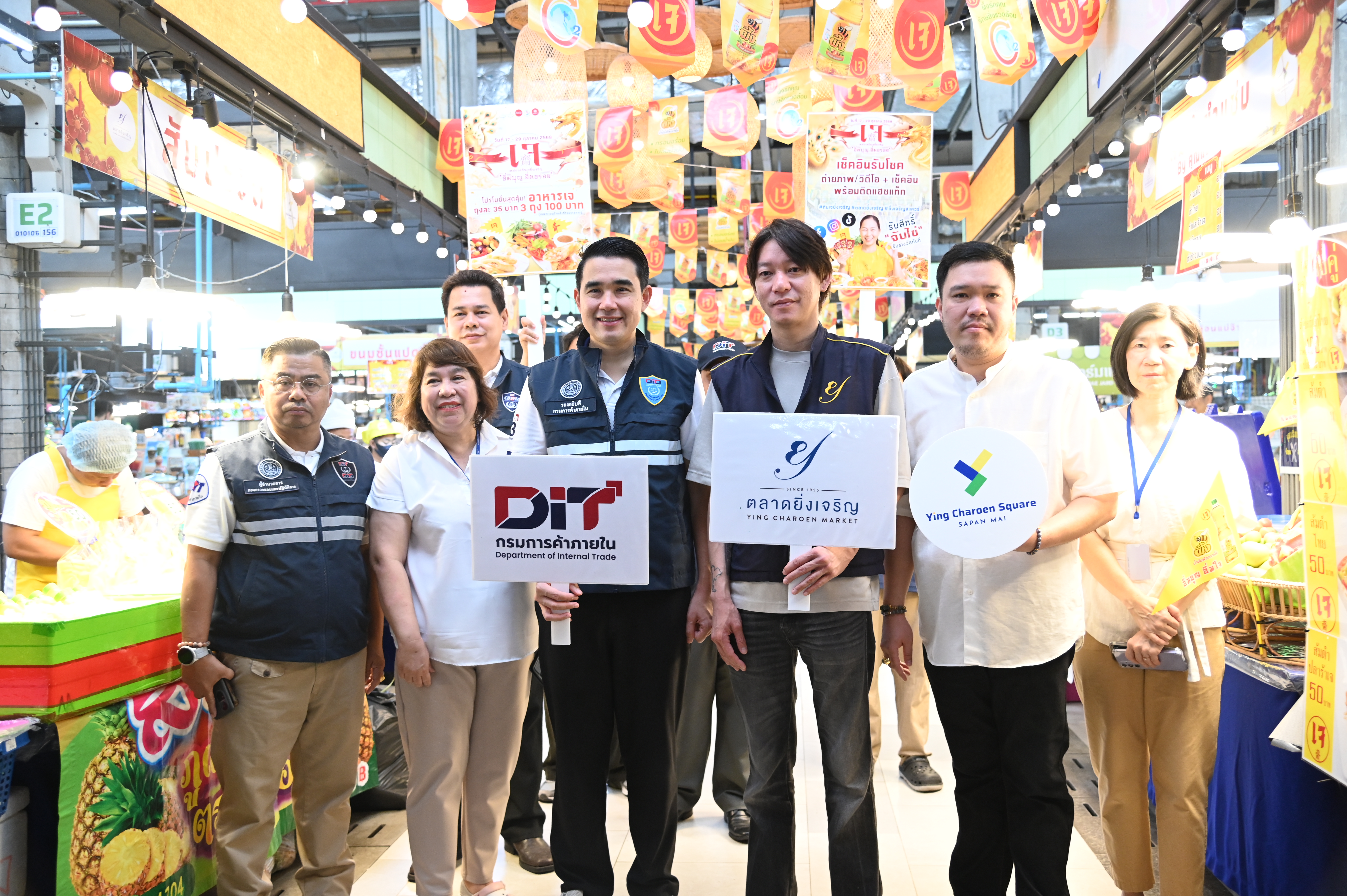วันศุกร์ที่ 17 ตุลาคม 2568 นายกรนิจ โนนจุ้ย รองอธิบดีกรมการค้าภายในลงพื้นที่ตรวจสอบการจำหน่ายวัตถุดิบที่ใช้ในการประกอบอาหารเจ และอาหารเจปรุงสำเร็จและตรวจสอบการปิดป้ายแสดงราคาในช่วงเทศกาลกินเจ ณ ตลาดยิ่งเจริญ บางเขน กรุงเทพฯ